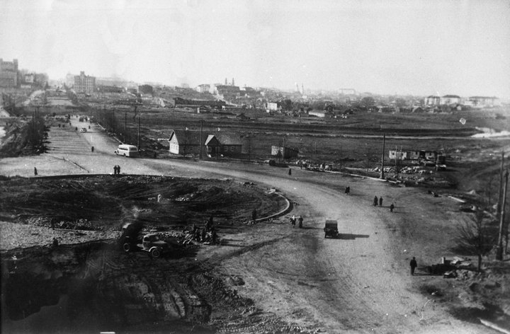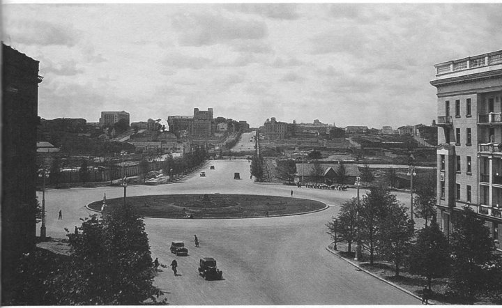 А вот как выглядела Круглая площадь (в 1958-м станет площадью Победы), когда еще не была разрыта.