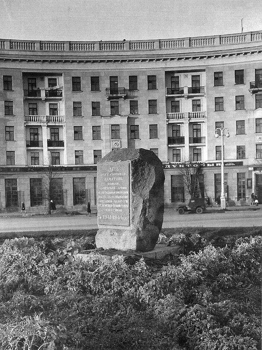 До обелиска на площади стоял памятный камень. Сохранился его снимок, сделанный в 1949 году.