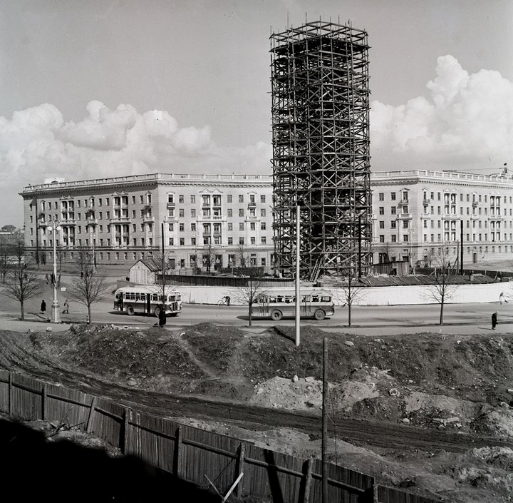 Без обелиска Победы в центре сложно представить себе современный Минск. Построили этот памятник только в 1954 году, а теперь ему исполняется 65. TUT.BY предлагает посмотреть, как возводили 38-метровый монумент.